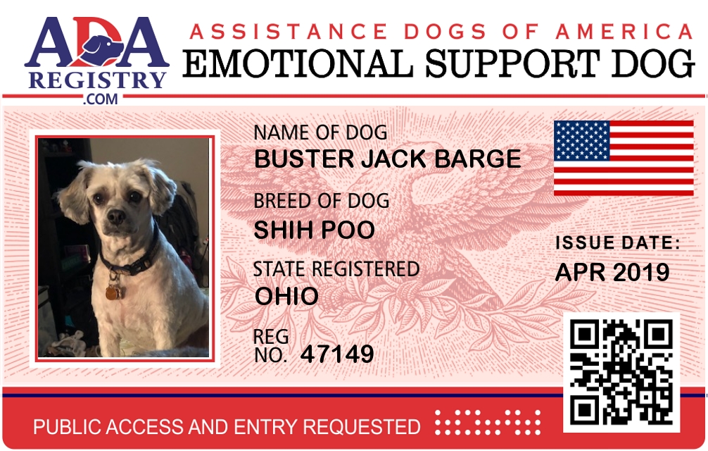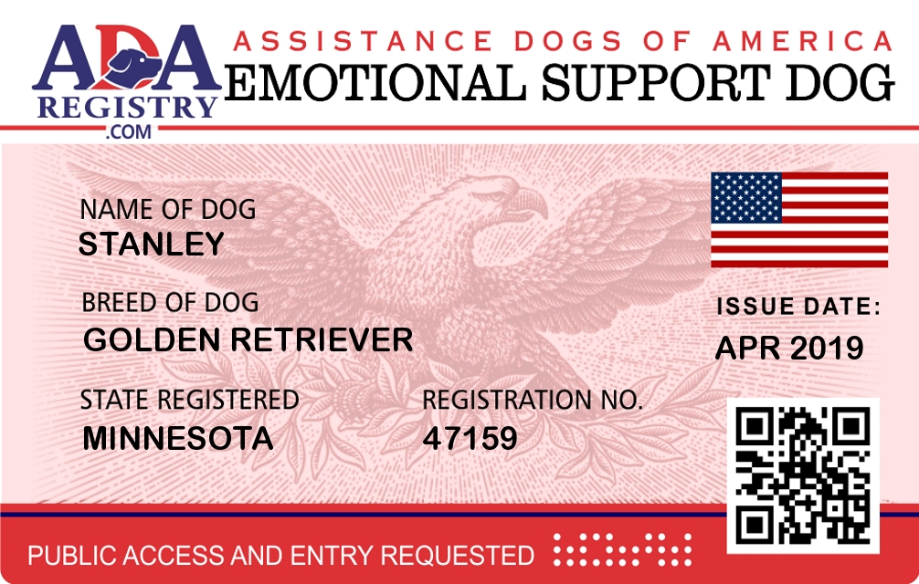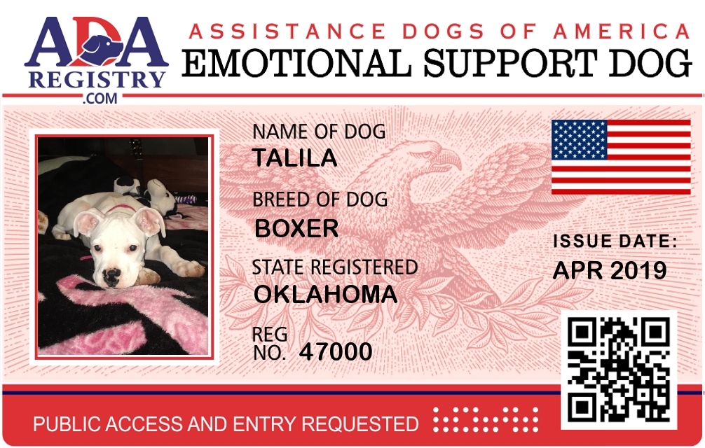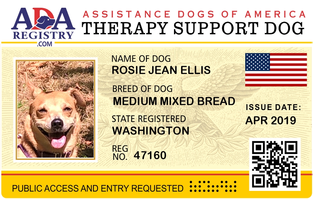 Emotional Support Dog Registration for Rosie Jean Ellis