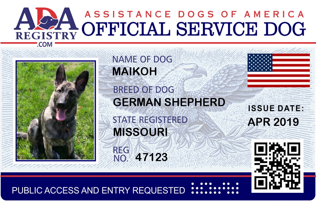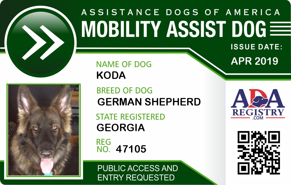 Registration Type: Brace / Mobility Assistance Dog Registration
