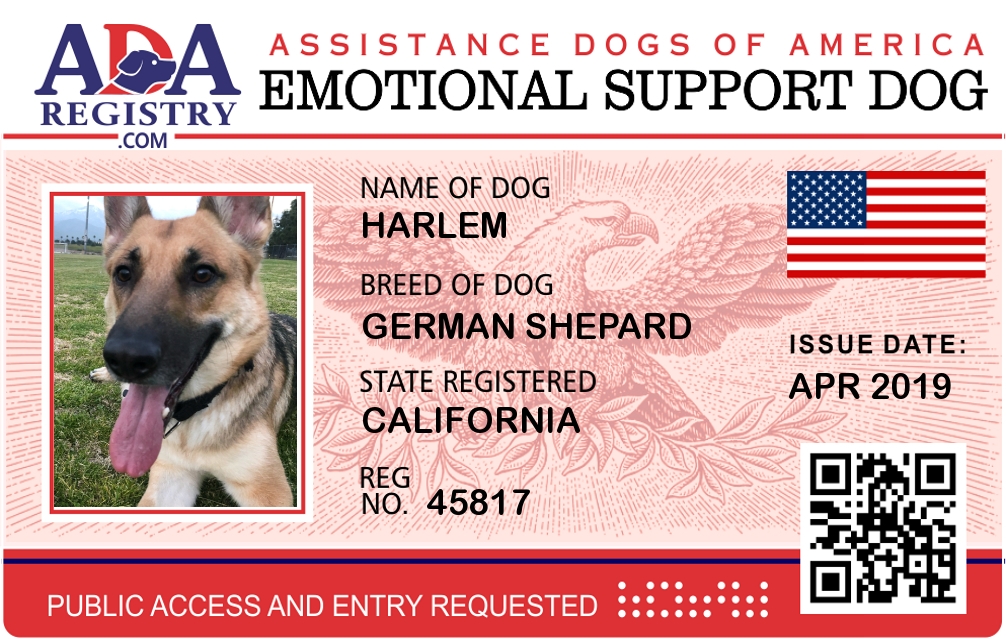 Emotional Support Dog Registration for HARLEM