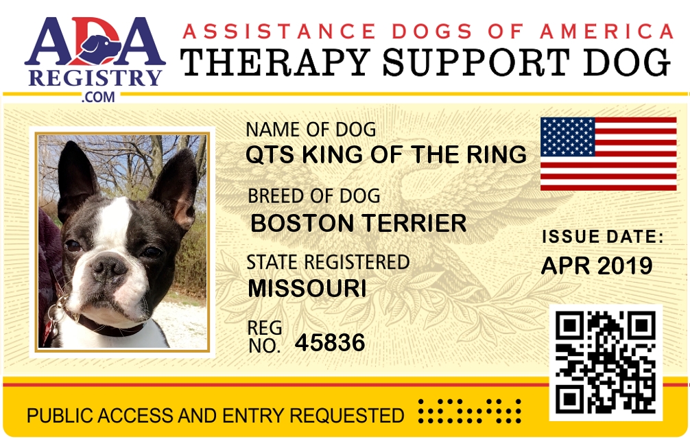 Therapy Dog Registration for QTs King of the Ring