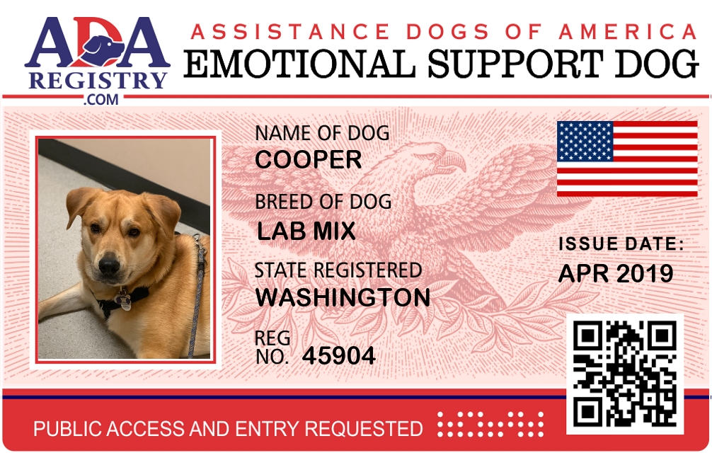 Emotional Support Dog Registration for Cooper