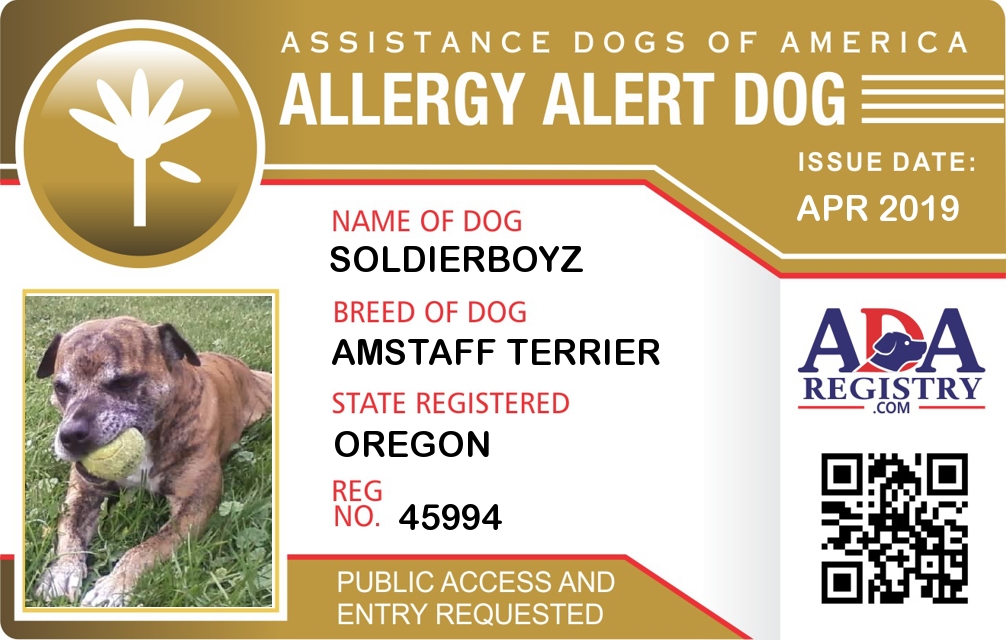 Allergy Alert Dog Registration for Soldierboyz