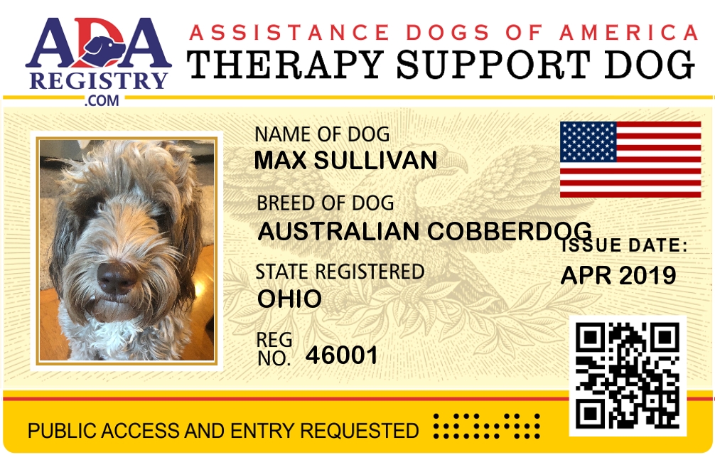 Therapy Dog Registration for Max Sullivan