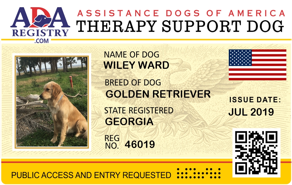 Emotional Support Dog Registration for Wiley Ward