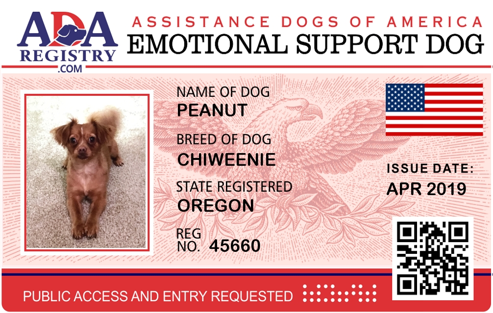 Emotional Support Dog Registration for Peanut