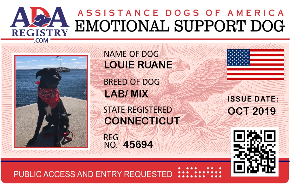 Emotional Support Dog Registration for Louie Ruane