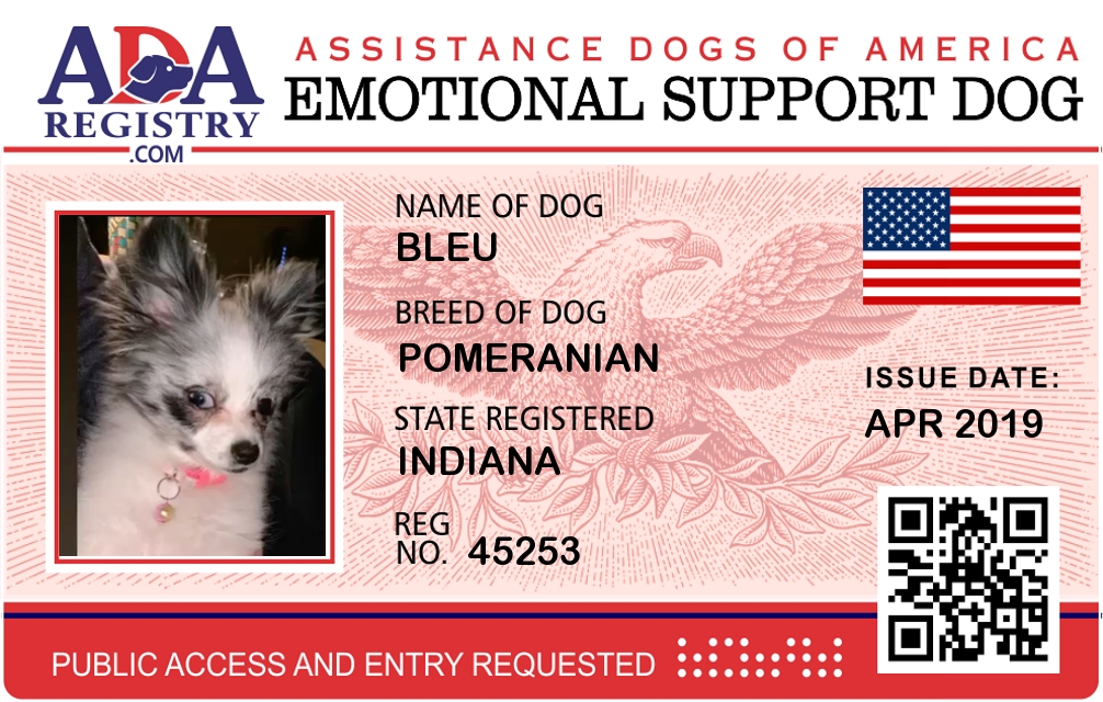 Emotional Support Dog Registration for Bleu