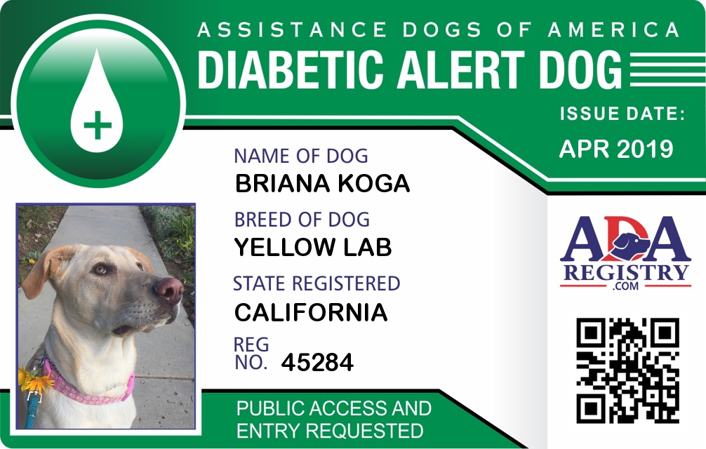Diabetic Alert Dog Registration for Briana Koga