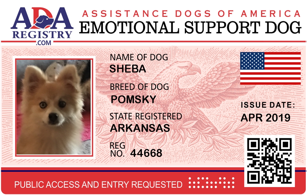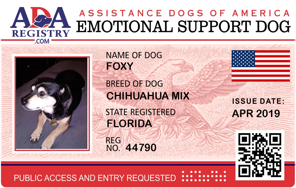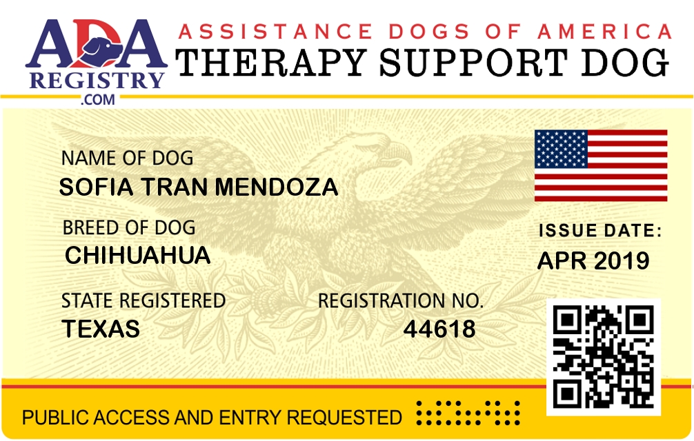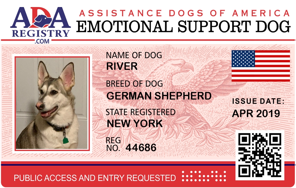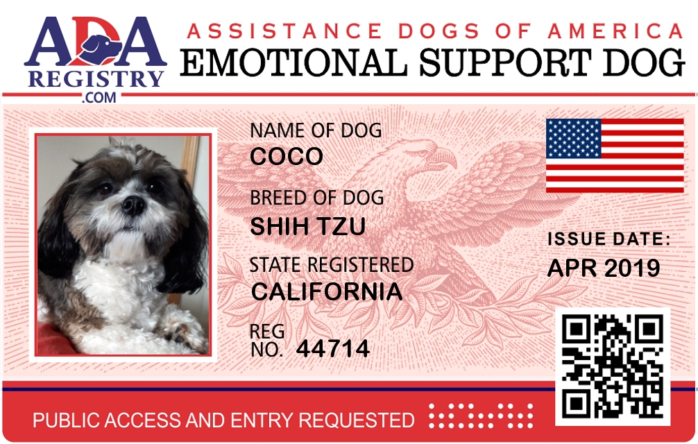 Emotional Support Dog Registration for TREASURE BOY WEISS