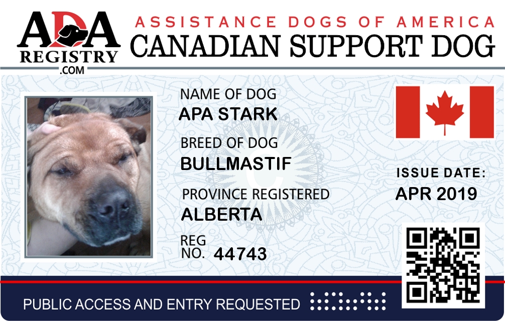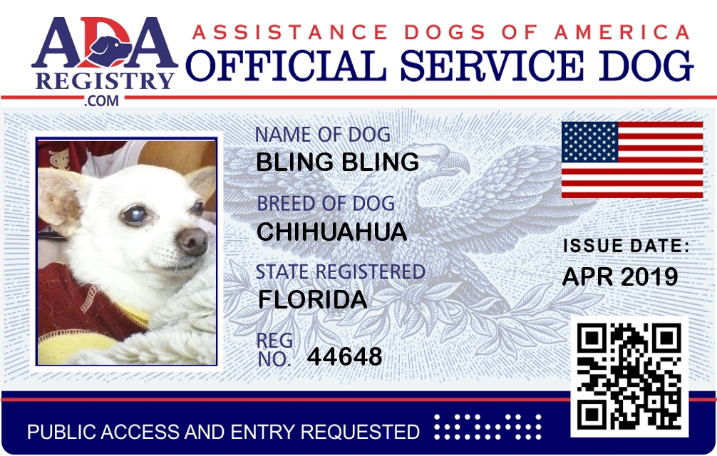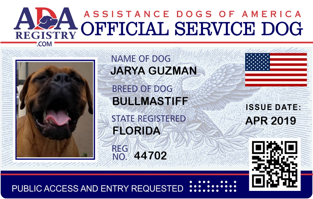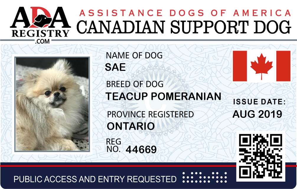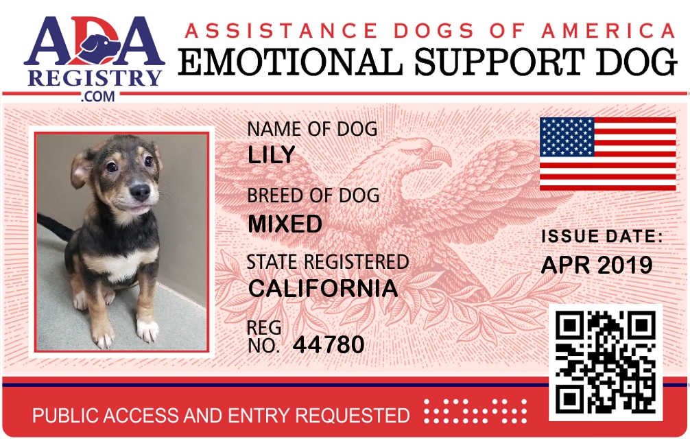 Emotional Support Dog Registration for TREASURE BOY WEISS