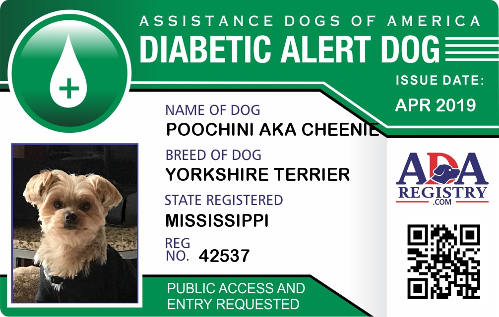 Diabetic Alert Dog Registration for Poochini aka Cheenie