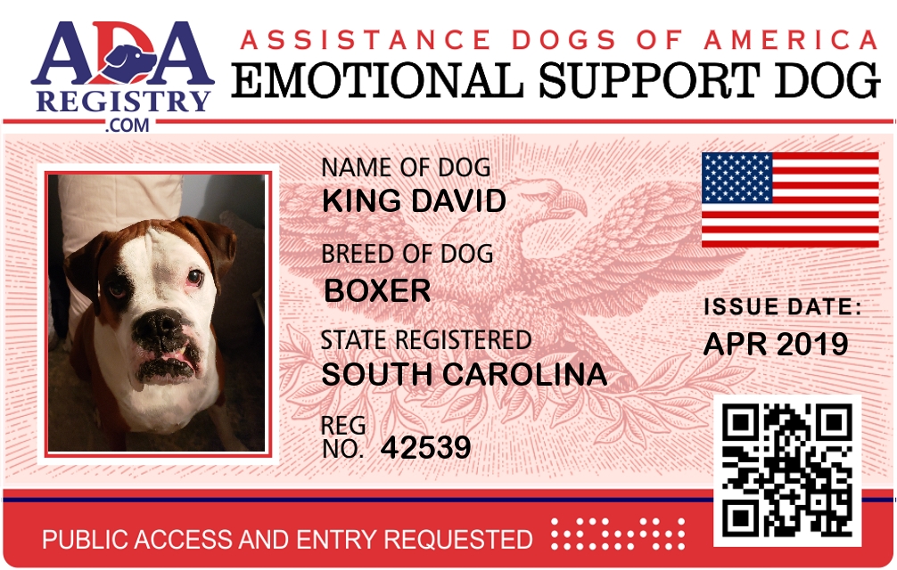 Emotional Support Dog Registration for King David