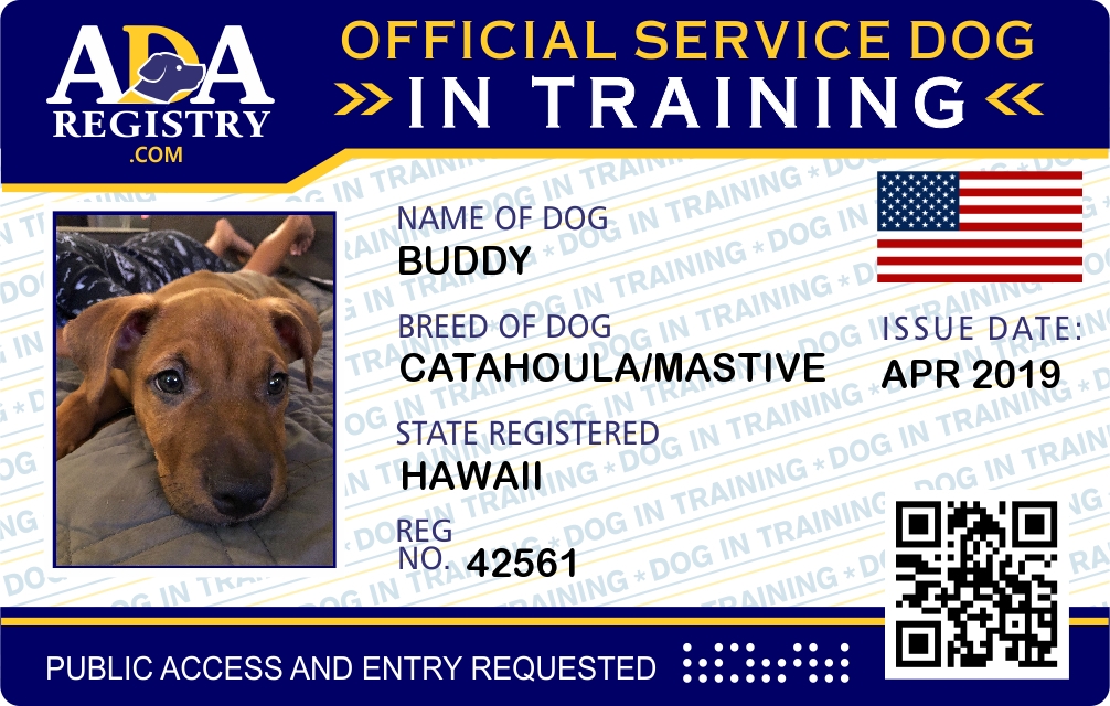 Service Dog In Training Registration for Buddy