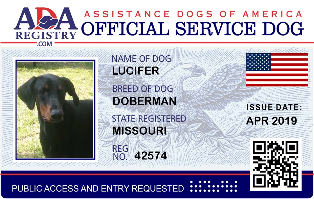 Service Dog Registration for Lucifer