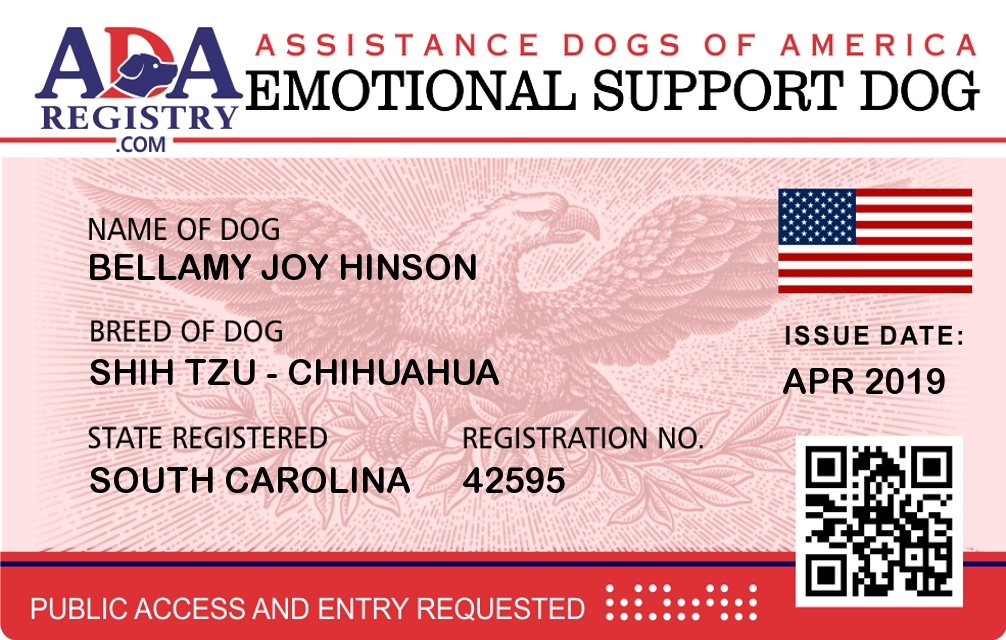 Emotional Support Dog Registration for Bellamy Joy Hinson