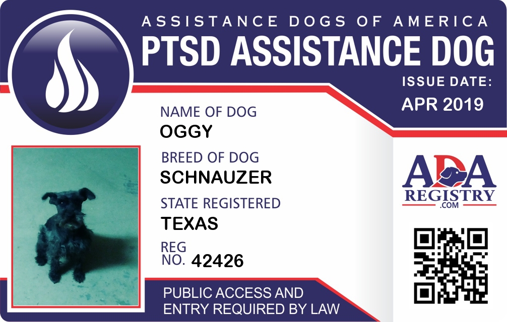 Oggy is my PTSD assistance dog, and he is very warm hearted dog. He is a great friendly dog that is my best buddy.