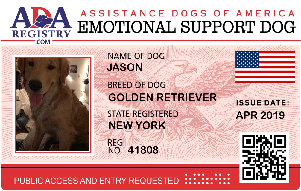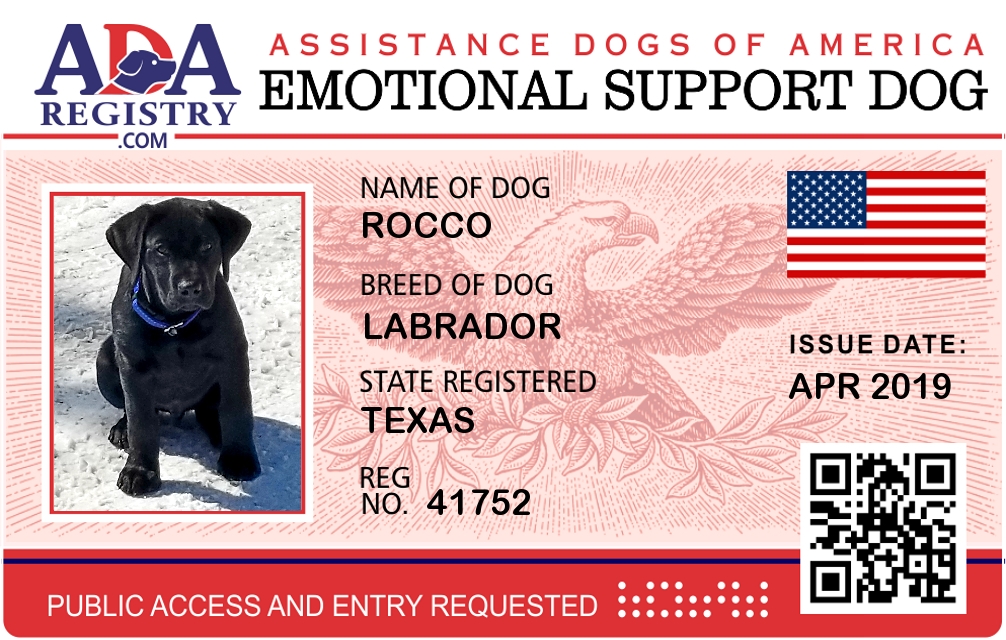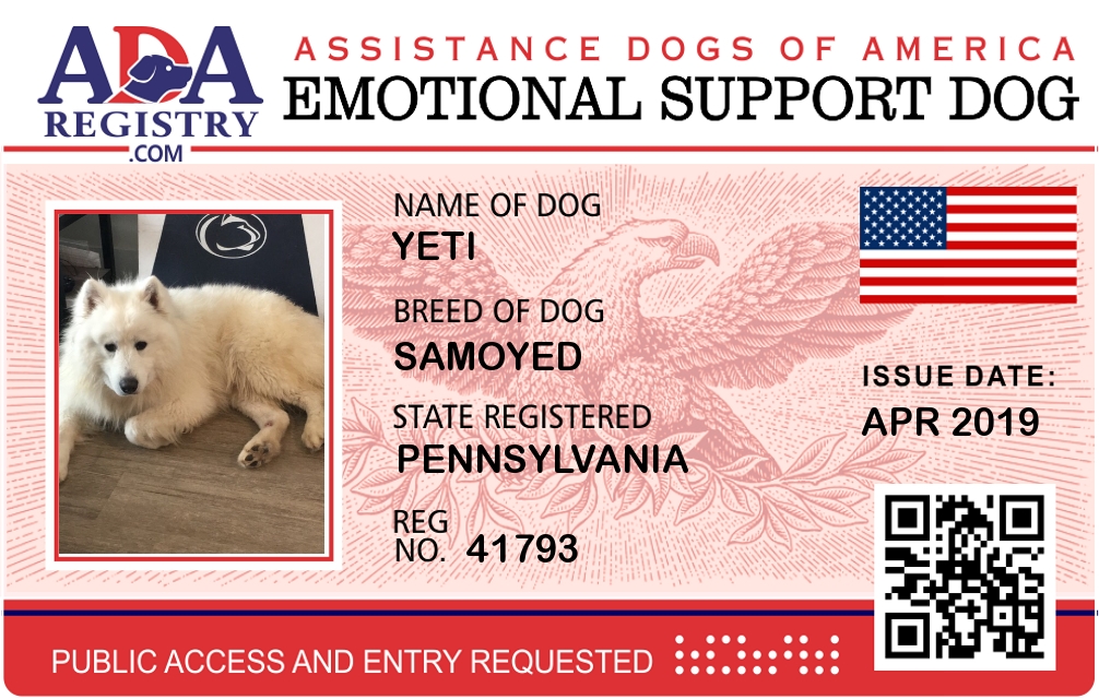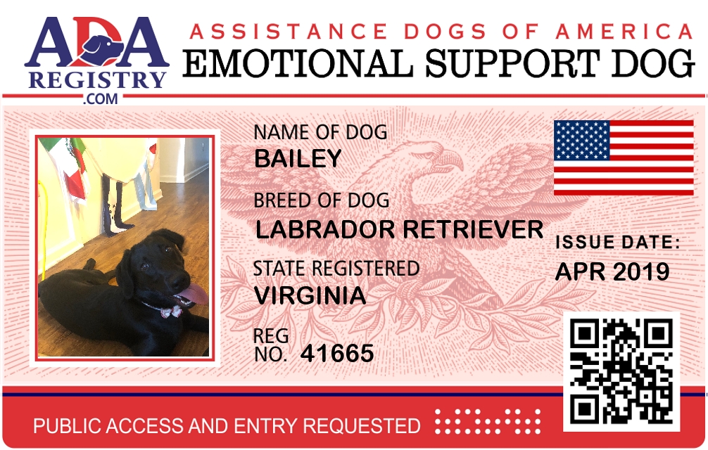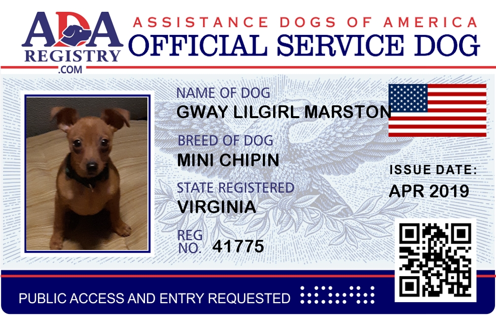 Emotional Support Dog Registration for GWay LilGirl Marston