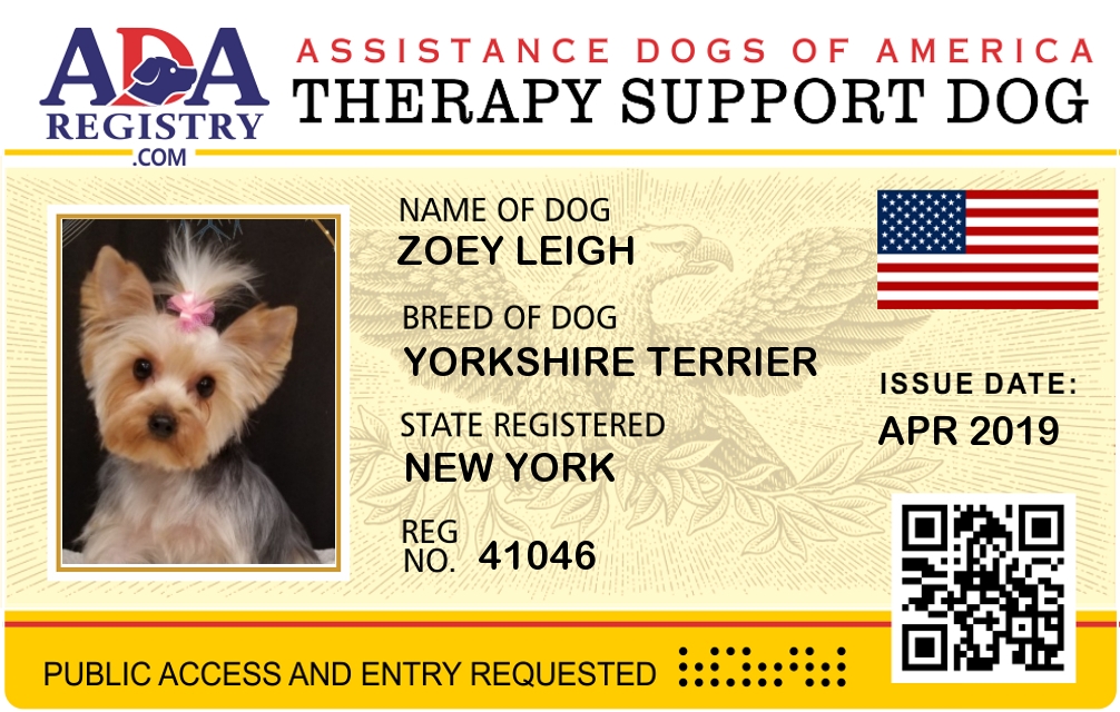Therapy Dog Registration for Zoey Leigh