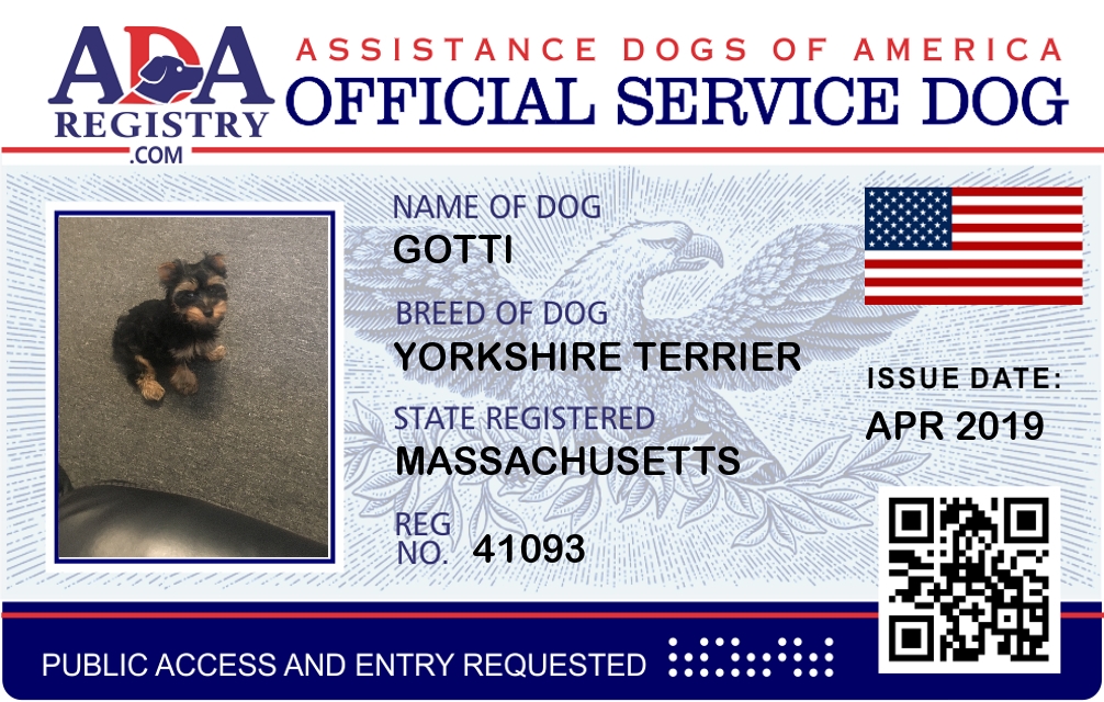 Service Dog Registration for Gotti