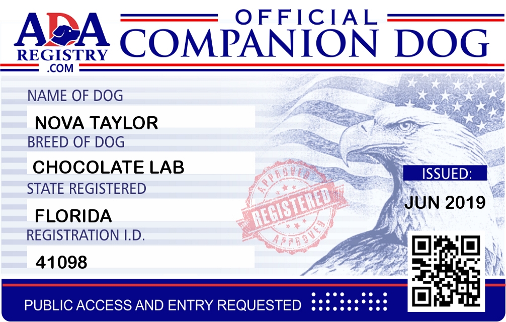 Companion Dog Registration for Nova Taylor
