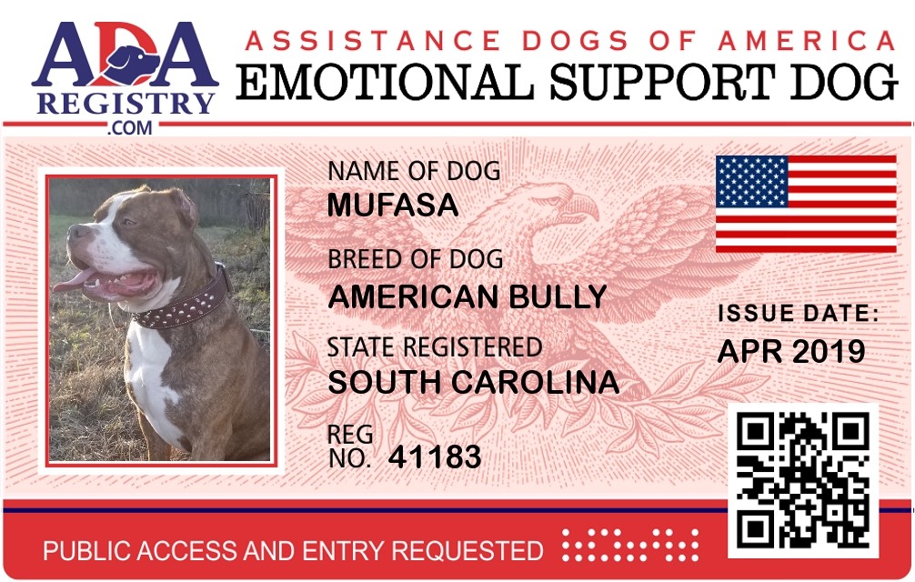 Emotional Support Dog Registration for Mufasa