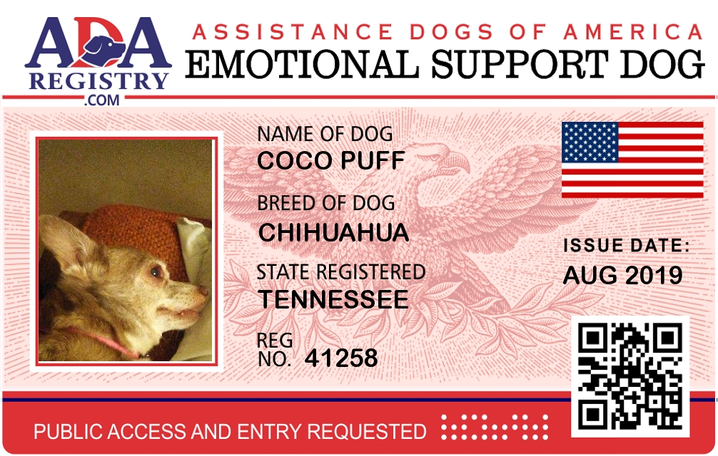 Emotional Support Dog Registration for Coco Puff