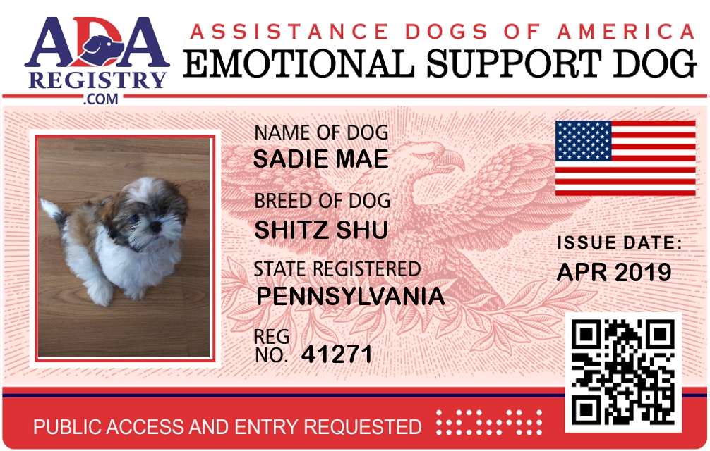 Emotional Support Dog Registration for Sadie Mae