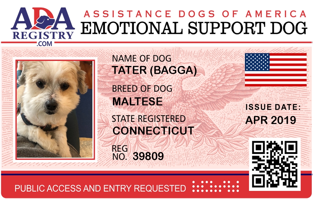 Emotional Support Dog Registration for Tater (Bagga)