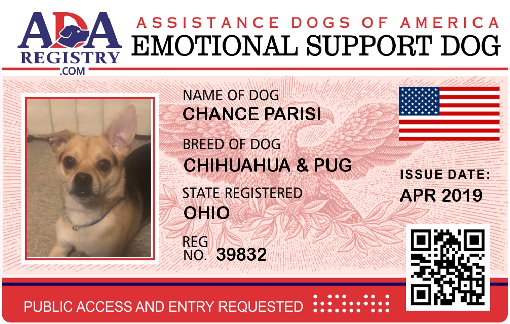 Emotional Support Dog Registration for Chance Parisi