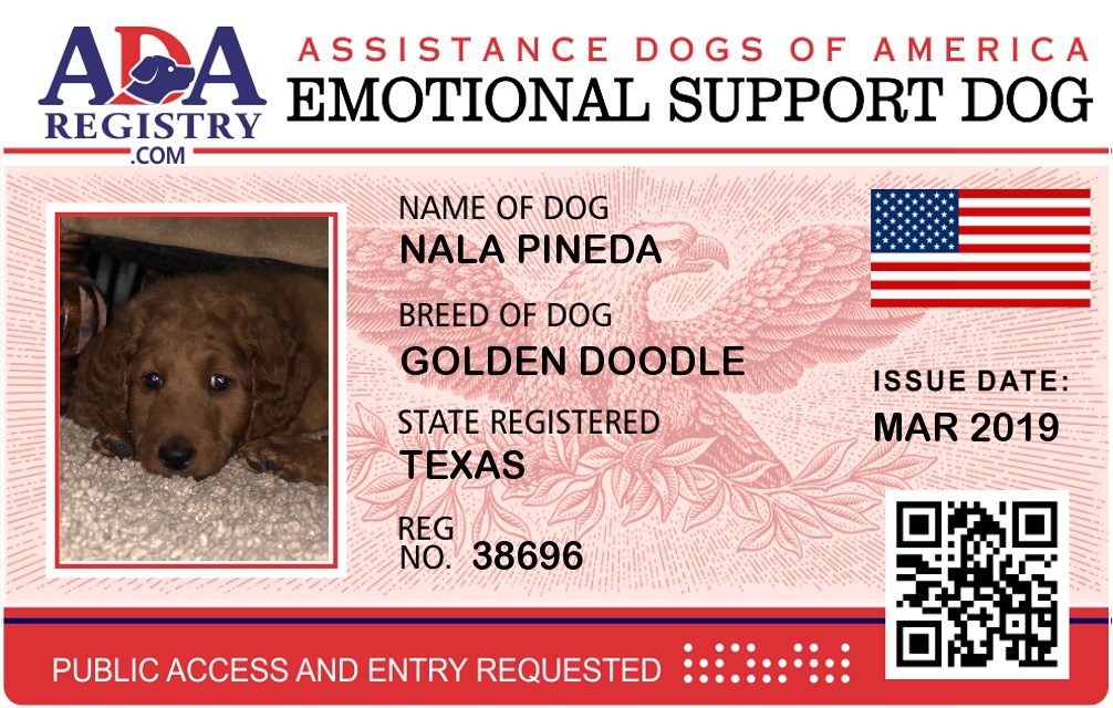 Emotional Support Dog Registration for Nala Pineda