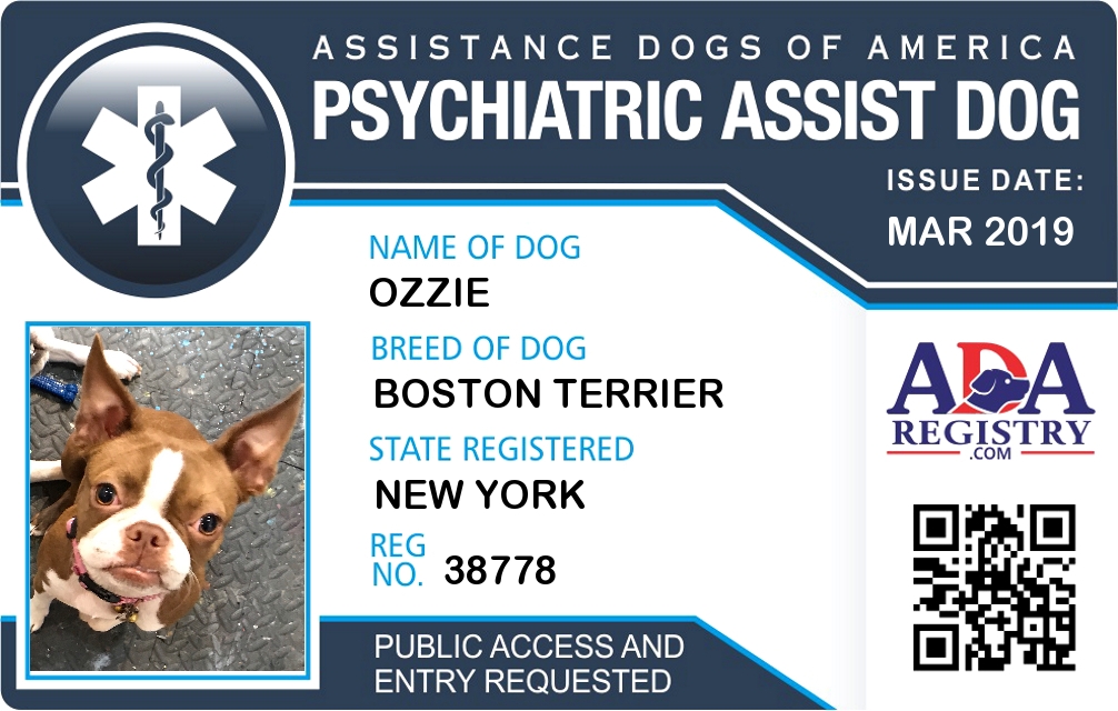 Psychiatric Service Dog Registration for Ozzie