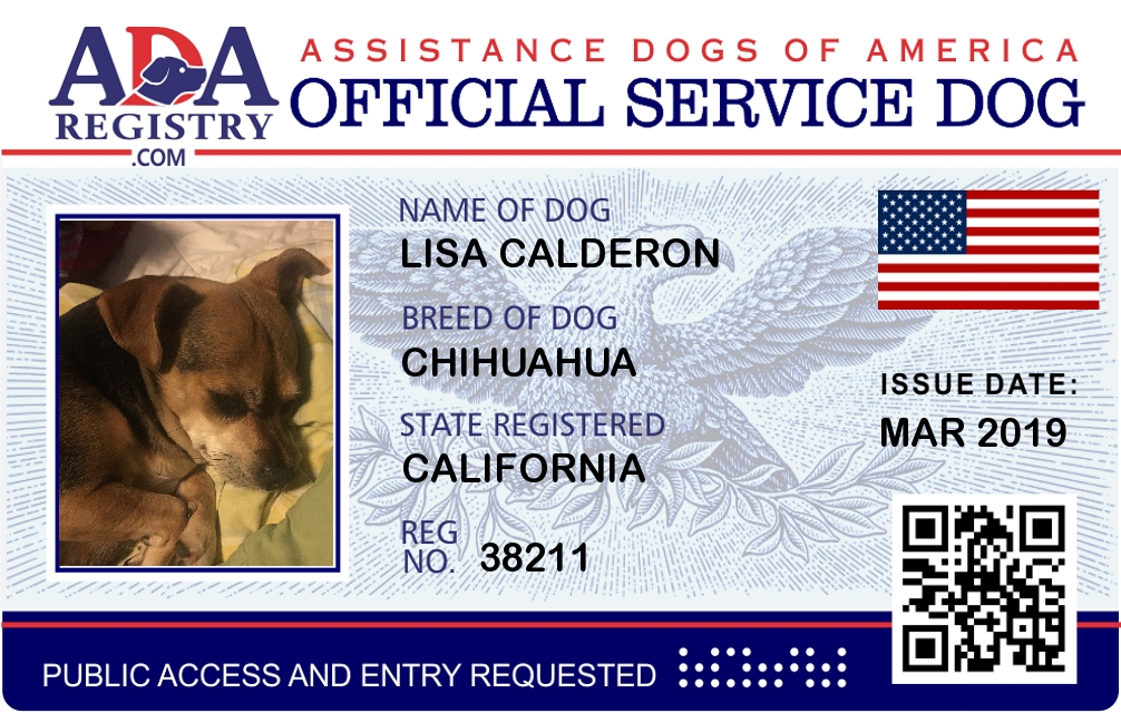 Service Dog Registration for Lisa Calderon