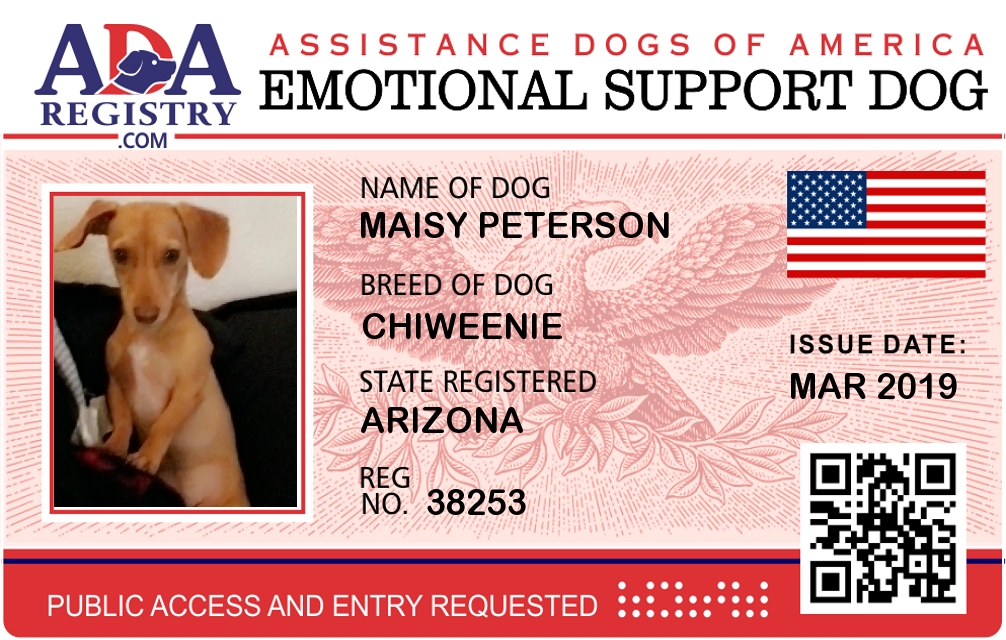 Emotional Support Dog Registration for Maisy Peterson