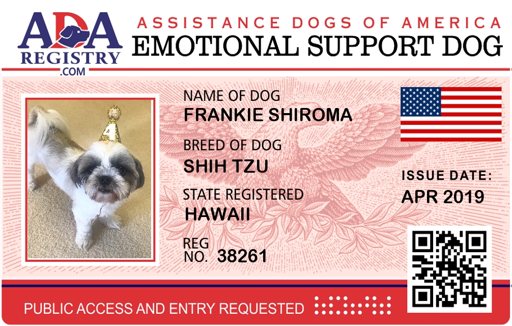 Emotional Support Dog Registration for Frankie Shiroma