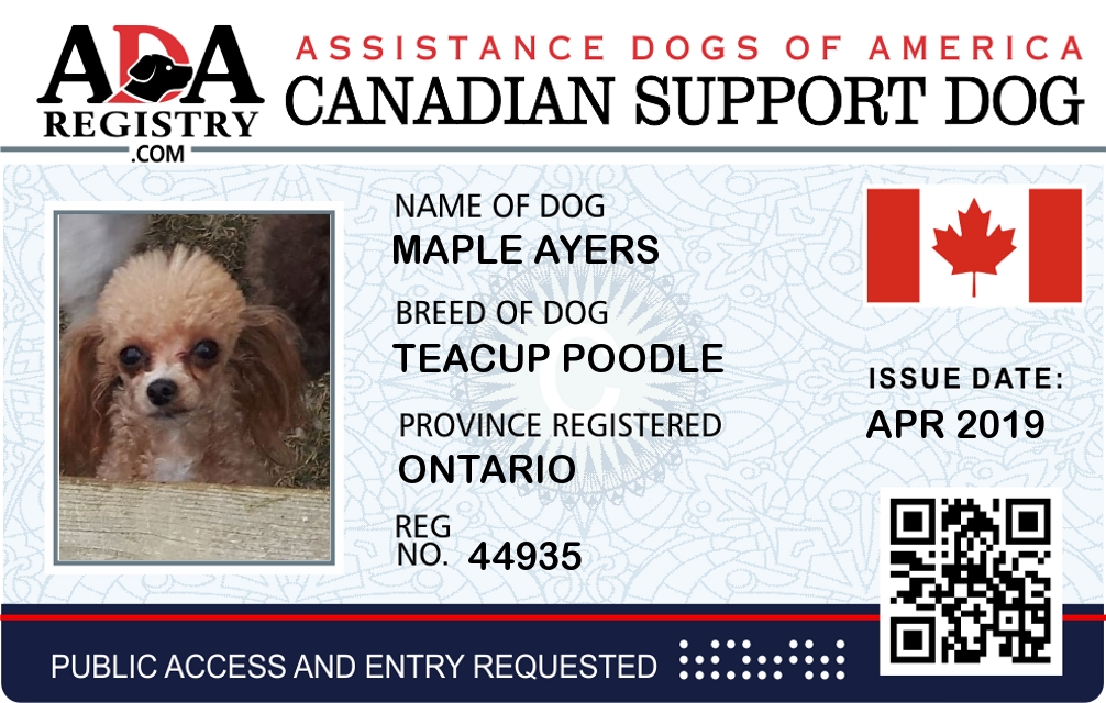 Emotional Support Dog Registration for MAPLE AYERS