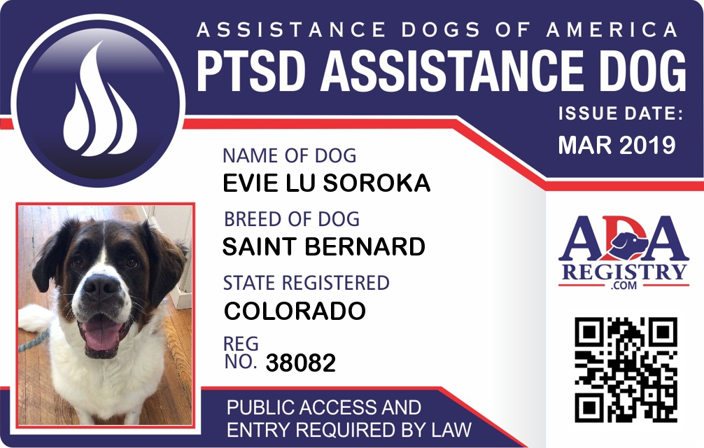 PTSD Assistance Dog Registration for Evie Lu Soroka