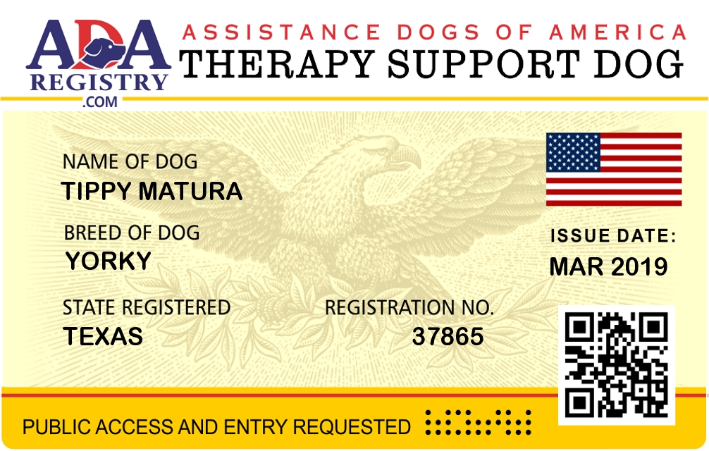 Therapy Dog Registration for Tippy Matura