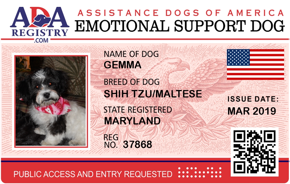 Emotional Support Dog Registration for Ziggy