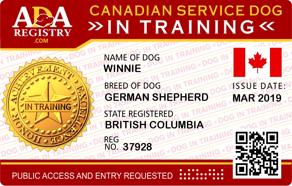 Service Dog In Training Registration for Winnie