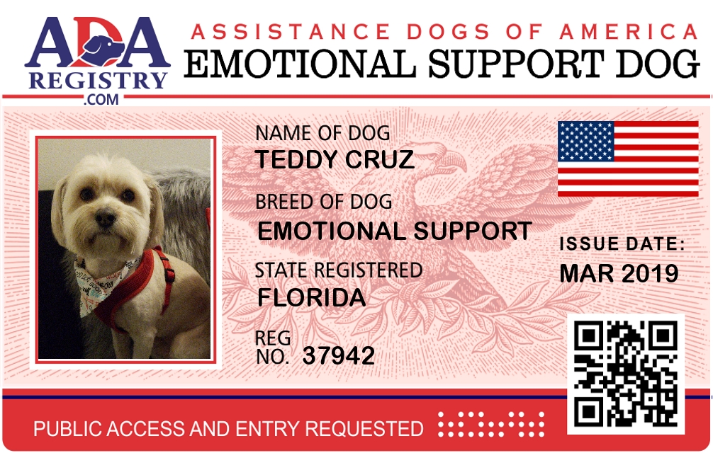 Emotional Support Dog Registration for Teddy Cruz
