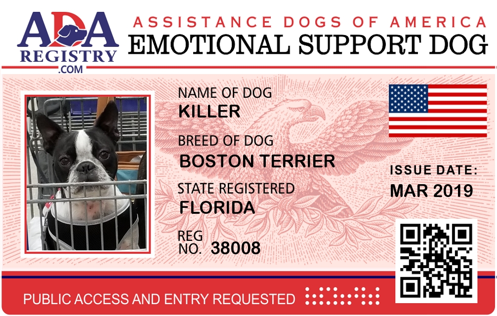 Emotional Support Dog Registration for Killer