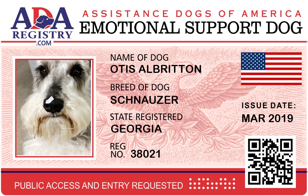 Emotional Support Dog Registration for Otis Albritton