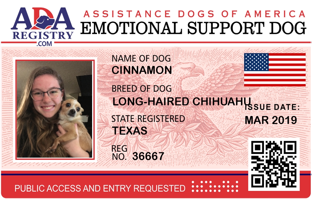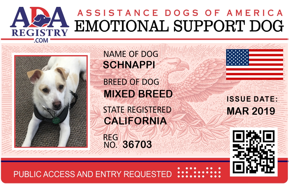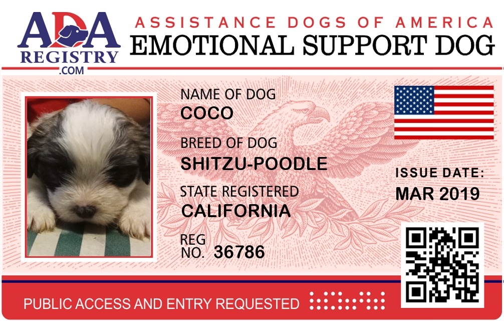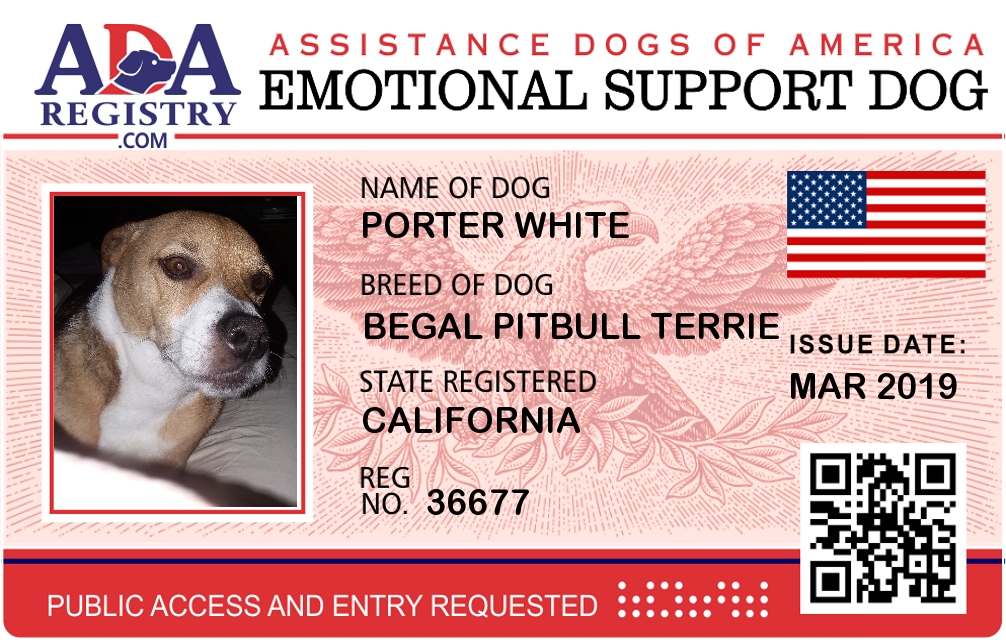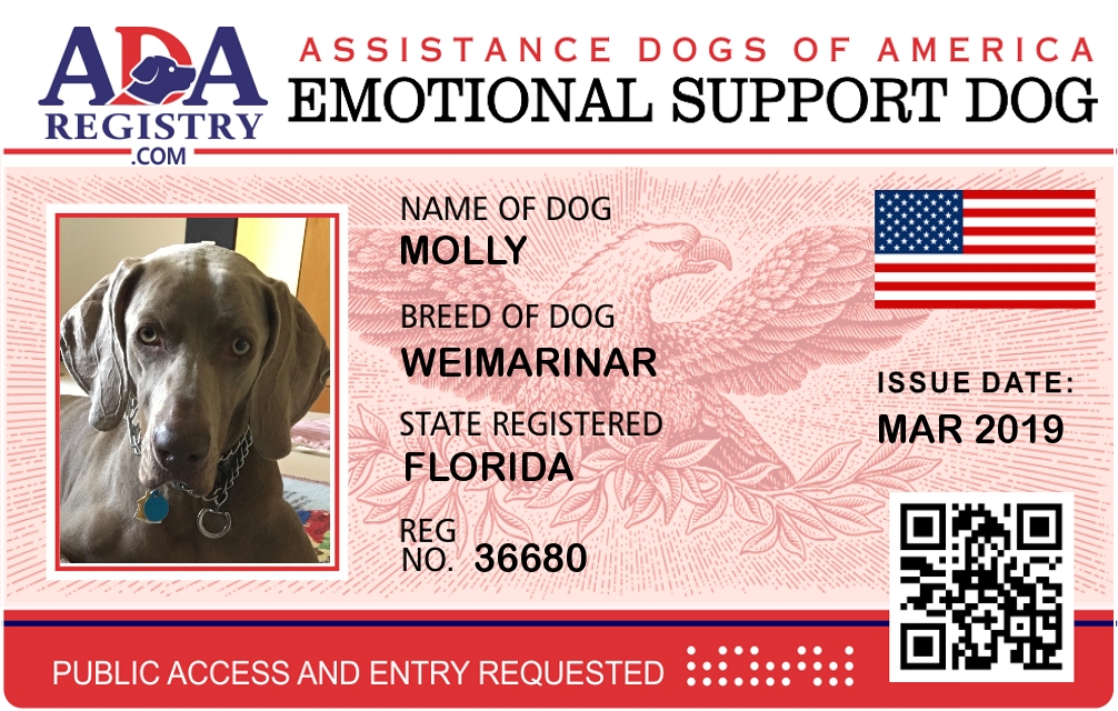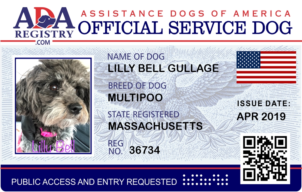 Emotional Support Dog Registration for Lilly Bell Gullage