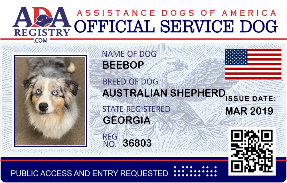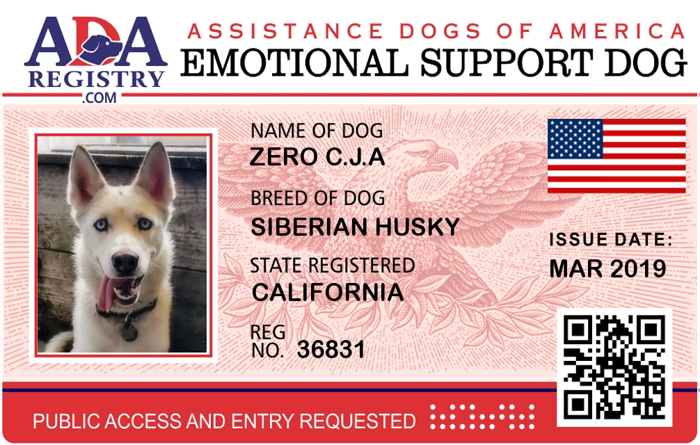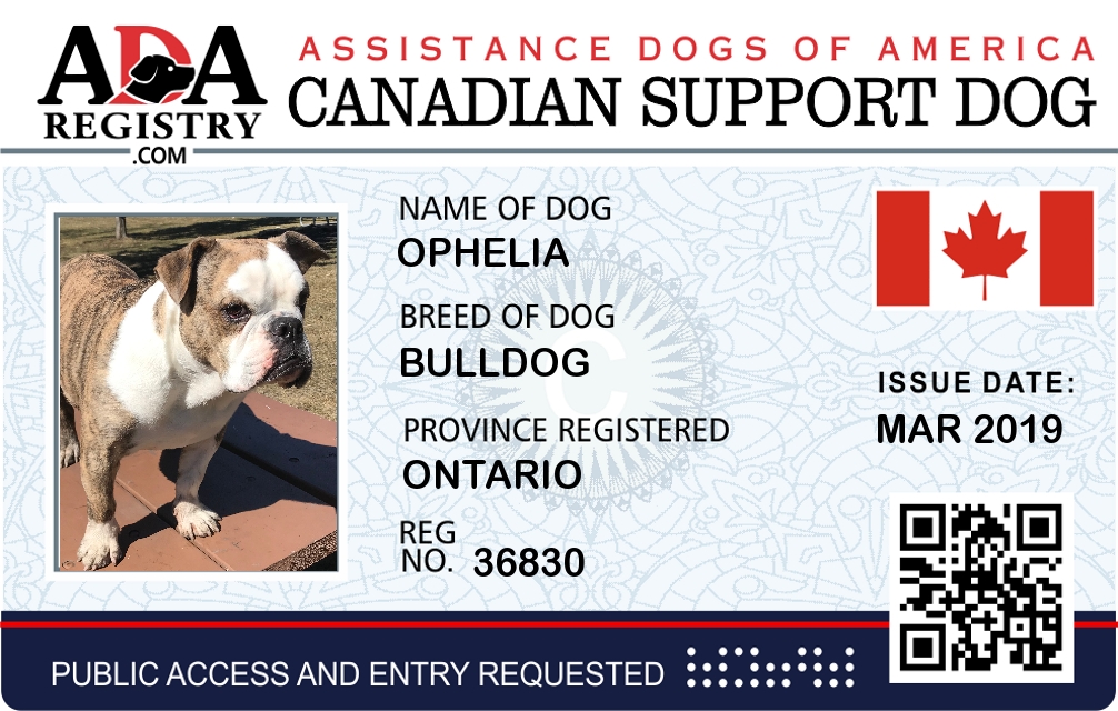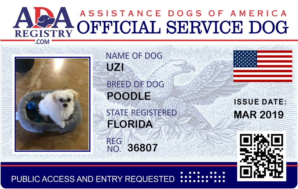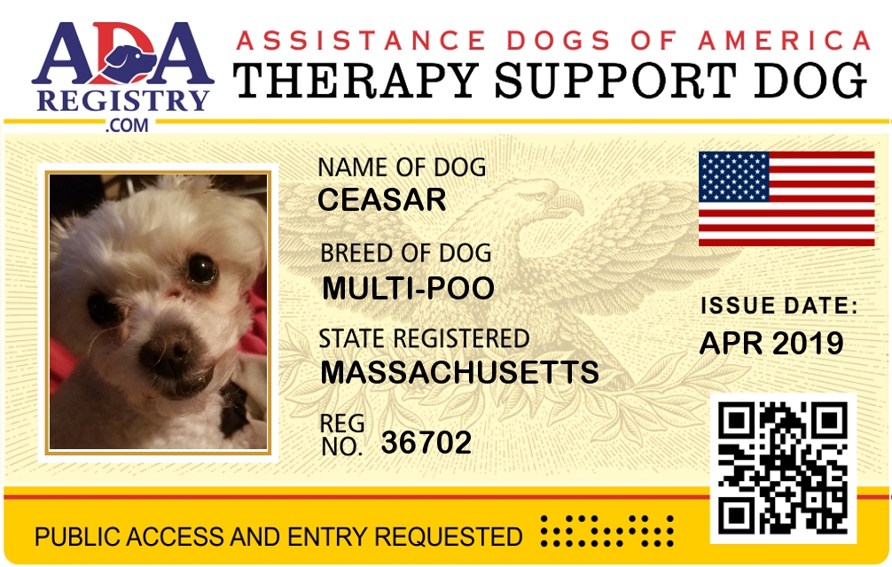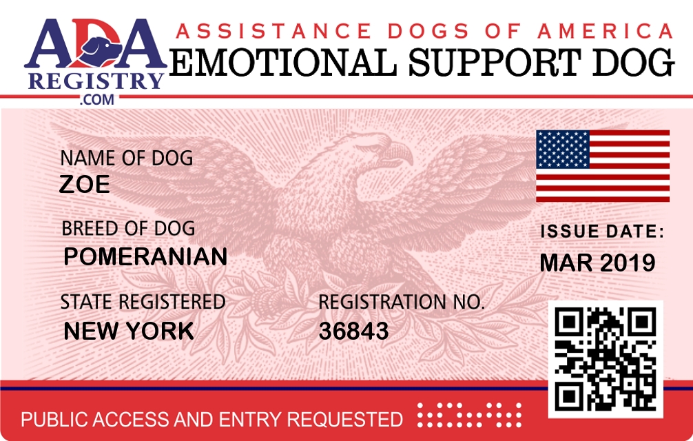 Emotional Support Dog Registration for Lilly Bell Gullage