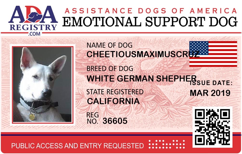 Emotional Support Dog Registration for CheetiousMaximusCruz