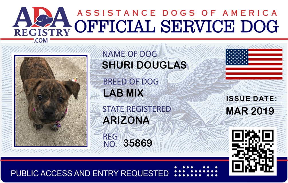Service Dog Registration for Shuri Douglas