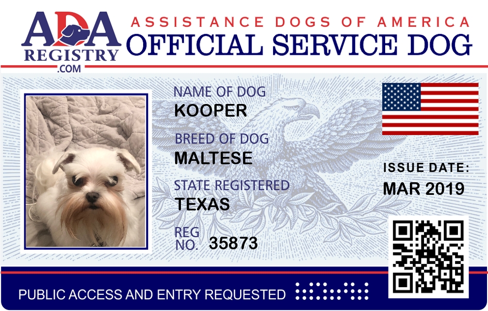 Service Dog Registration for Kooper