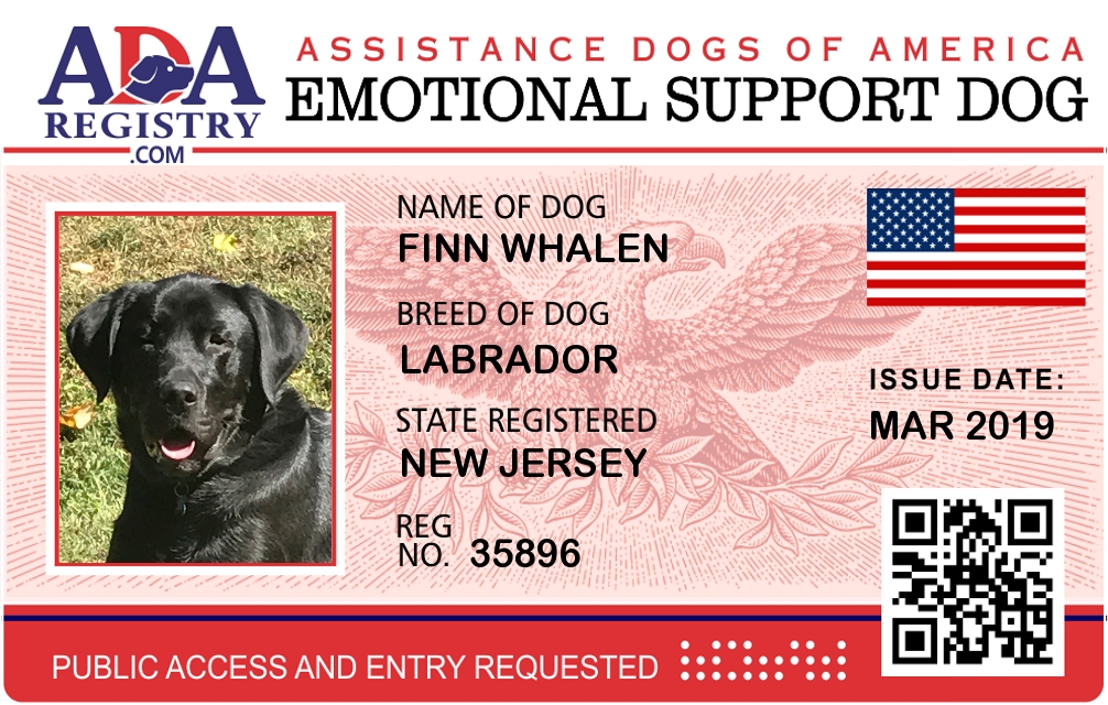 Emotional Support Dog Registration for Finn Whalen