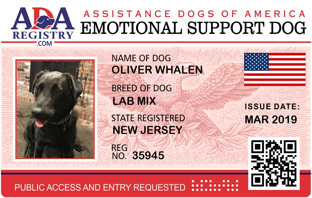 Emotional Support Dog Registration for Oliver Whalen