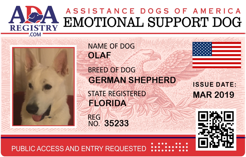 Emotional Support Dog Registration for Olaf